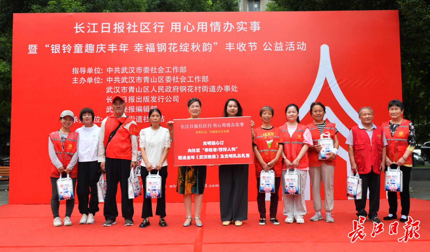 秋韵送爽,情满社区。9月23日下午,“长江日报社区行 用心用情办实事”暨“银龄童趣庆丰年 幸福钢花绽秋韵”丰收节公益活动在116社区中心广场举办,活动由市委社会工作部指导,青山区委社会工作部、钢花村街道办事处联合主办。