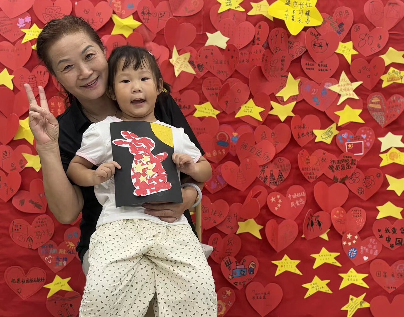 中班孩子通过绘画、手工、学军姿、制作五角星挂饰等方式,感受双节意义。稚嫩歌声与认真动作中,传递出对祖国与军人的敬意。