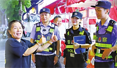 国庆中秋佳节,青山区街头巷尾鲜艳的五星红旗迎风招展,汇聚成流动的红色海洋,行进其间的一抹抹藏蓝色身影格外醒目:十里钢城的社区村湾,“英模背包服务队”将户政窗口搬到群众家门口;街头巷尾,“钢城义警”与民警联勤巡防织密平安防护网;江滩沿岸,第三警务站民警日夜守护一江安澜;企业园区,民警主动上门定制“平安服务”,把保障送进生产一线;大型活动现场,民警坚守岗位,用汗水守护欢笑……景美、人和、产业兴,离不开“警察蓝”的坚实守护。
