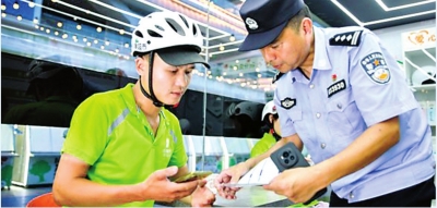武汉楷模、全市金牌调解员程波向外卖员宣讲反诈知识。青山公安供图