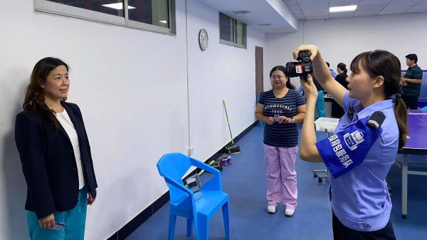 8月26日中午,武钢总医院活动场馆内人声鼎沸——英模背包服务队的民警辅警们正利用午休时间为该院医护人员“不断档”办理身份证换领业务。照片拍摄、指纹采集、信息核对……一套“一站式”服务走下来,不超过5分钟即可完成办理流程。针对有集中办证需求的单位,青山公安积极践行主动警务理念,主动对接单位、企业需求,将办证窗口“搬”进单位,有效化解了部分单位员工因工作时间难以抽空前往户籍窗口办理业务的难题。