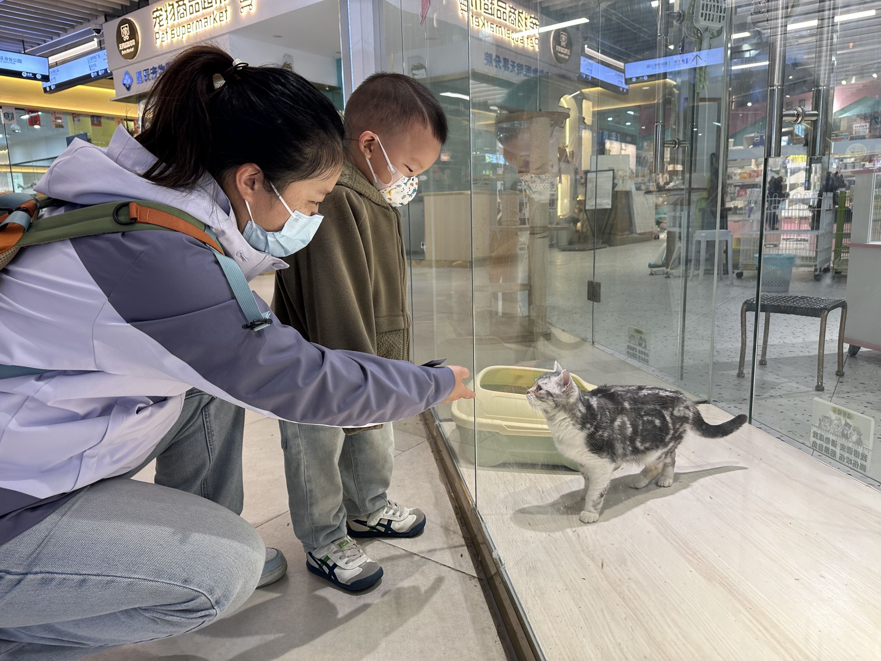 一小朋友在商场宠物店前驻足。记者张衡 摄